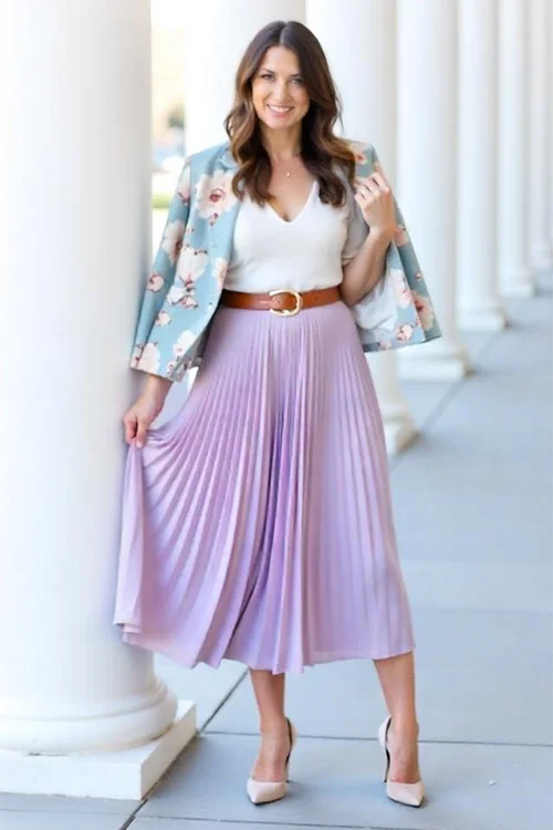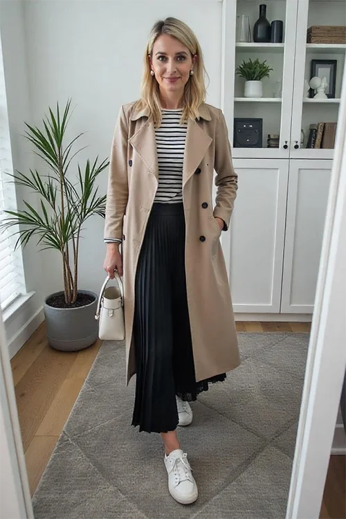 - Haine structurate și aspect îngrijit – Haine bine croite, cu linii simple și precise, cum ar fi sacouri, fuste plisate, pantaloni chino, tricouri polo, pulovere cu guler sau torsade și cămăși Oxford.