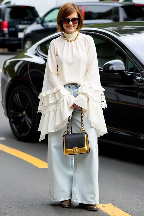 - Haine fluide și delicate – Haine cu linii moi și rotunjite, cum ar fi rochii în falduri, pantaloni care accentuează talia, fuste cloș, bluze cu volane sau mâneci clopot.