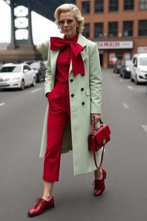 - Accesorii statement – Bijuterii mari și vizibile, pantofi cu toc înalt, genți masive, curele cu catarame mari, pălării sau eșarfe supradimensionate.