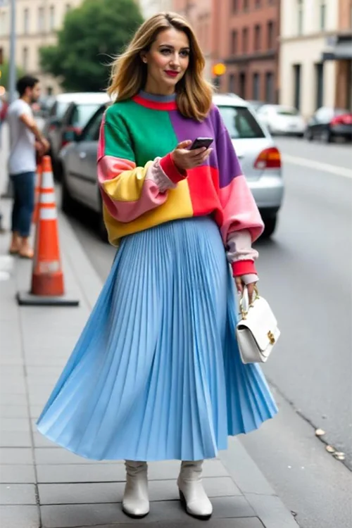 - Haine variate și mix de stiluri – Haine asimetrice, supradimensionate sau cu detalii creative, suprapuneri neconvenționale, combinații neașteptate de piese casual, elegante sau vintage.